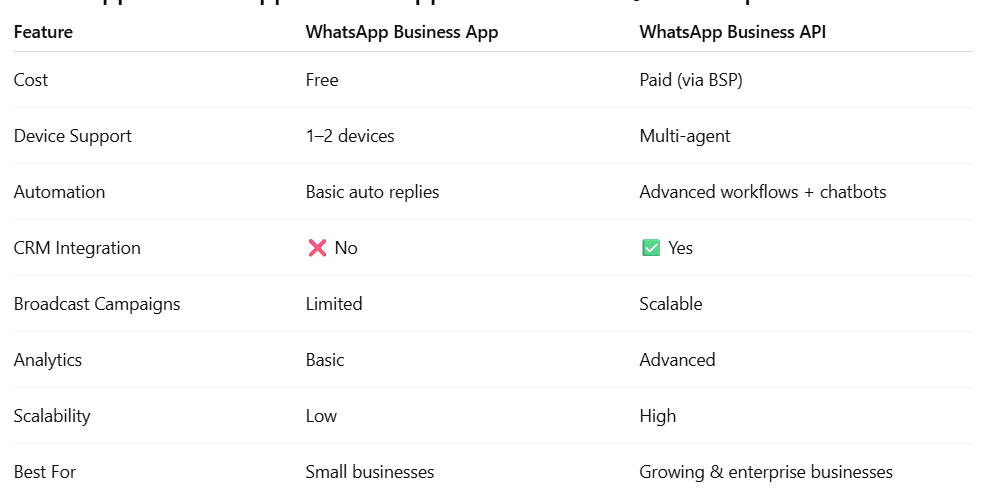 WhatsApp Business App vs WhatsApp Business API – Detailed Comparison
